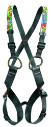 - Verbindung zum Sicherheitsgurt mit Bandschlinge im Ankerstich (Länge nach Körpergröße; dies ermöglicht variable Anpassung des SSB)